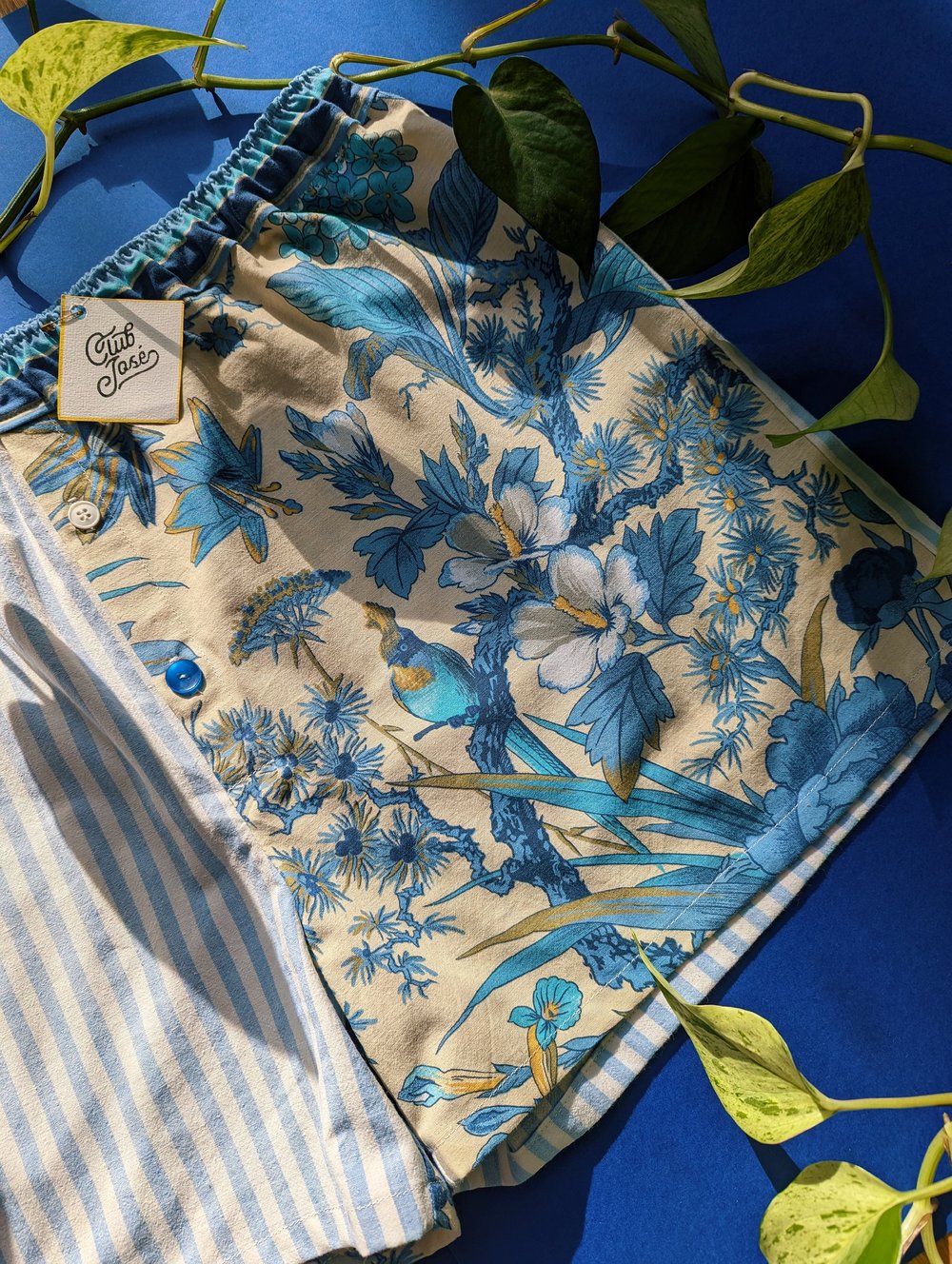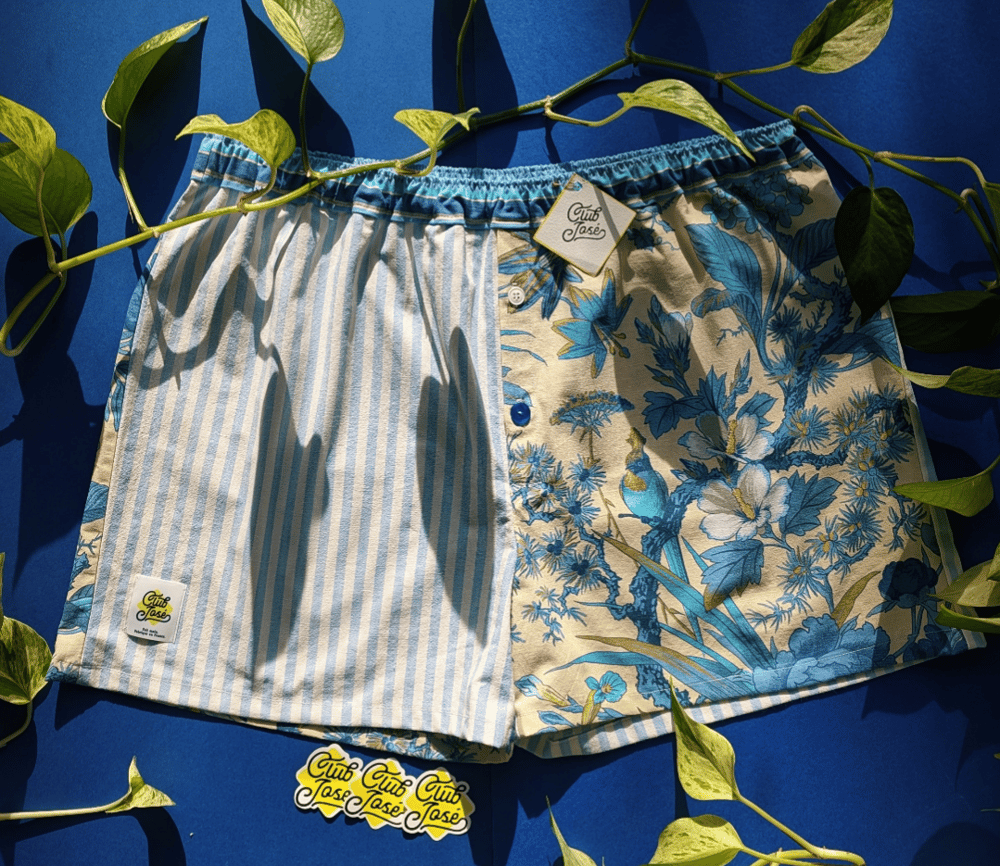 Ces caleçons unisexes sont upcyclés à partir de deux draps de seconde main.