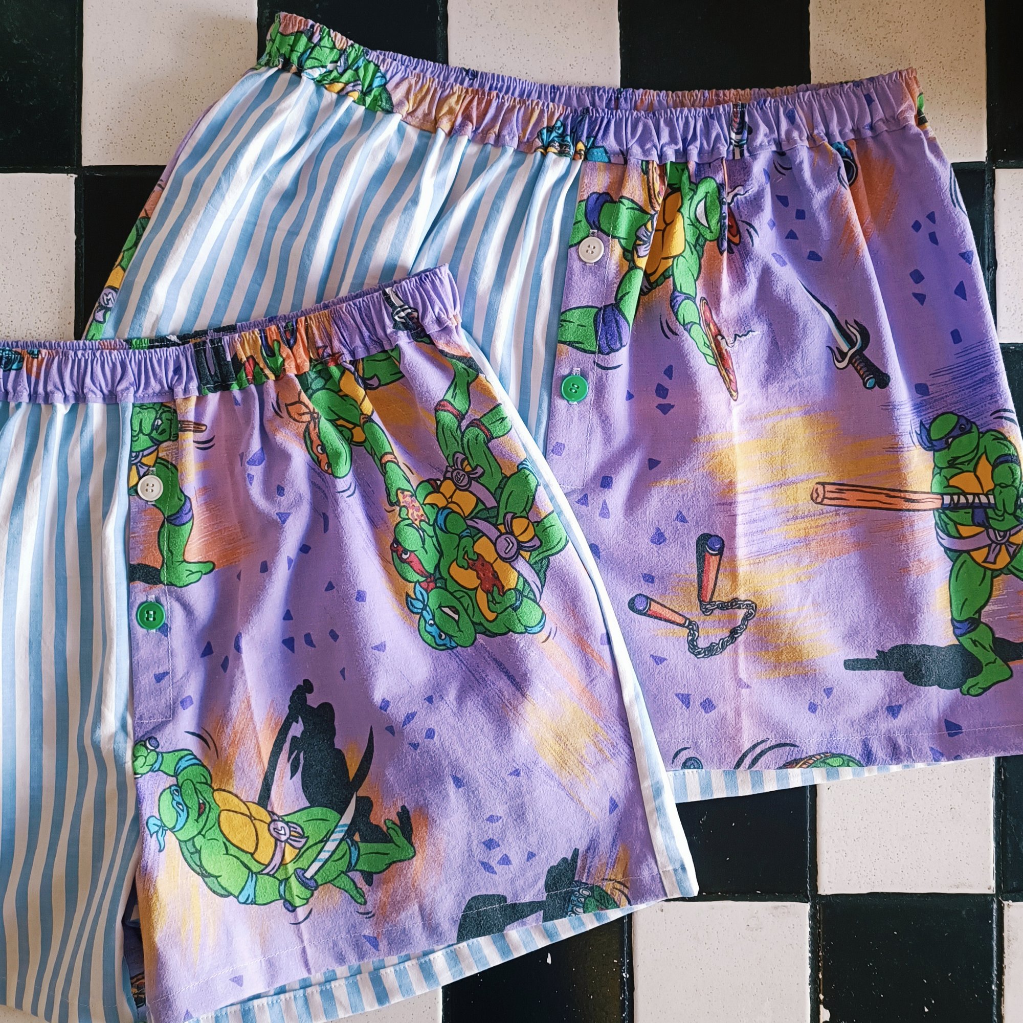 Ce caleçon unisexe est upcyclé à partir de 2draps de seconde main.
